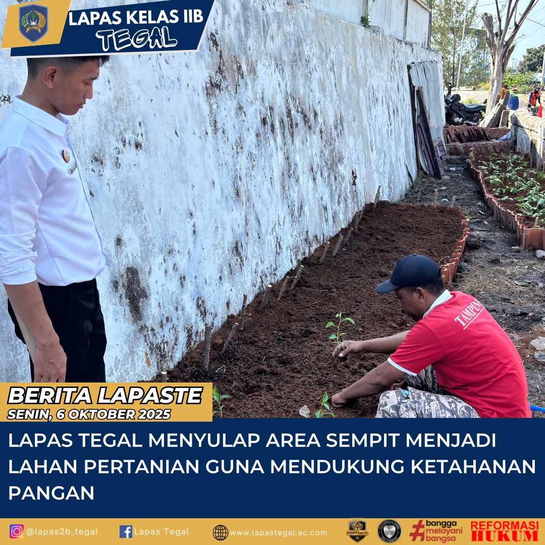 Tegal– Lintasberita9.com- ,Lembaga Pemasyarakatan Kelas IIB Tegal bangun area sempit menjadi Lahan Pertanian guna medukung 13 Program Akselerasi Mentri ImigrasiLintas Berita 9