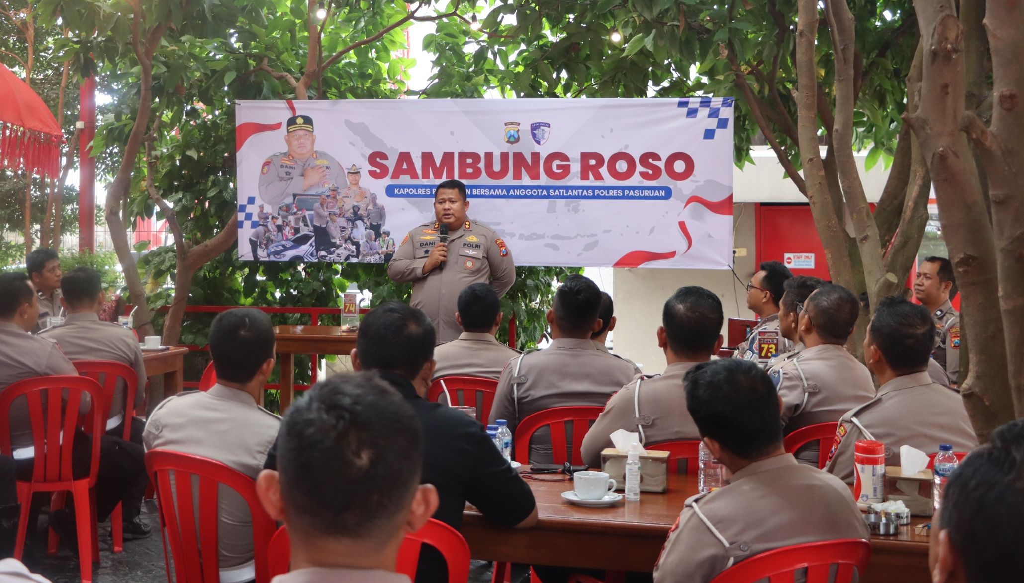 PASURUAN – Kapolres Pasuruan AKBP Jazuli Dani Iriawan menggelar kegiatan Sambung Roso bersama seluruh pejabat utama (PJU) dan anggota SatlantasLintas Berita 9