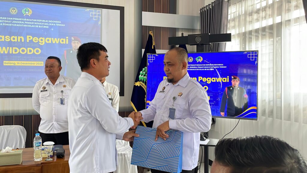 Batang – Lembaga Pemasyarakatan (Lapas) Kelas IIB Batang menggelar kegiatan pelepasan pegawai yang akan melaksanakan tugas di tempat baru, Selasa (16/12). Kegiatan ini diselenggarakan di Aula Lapas Batang dan diikuti oleh Kepala Lapas Kelas IIB Batang, Nurhamdan, jajaran pejabat struktural, serta jajaran pegawai Lapas Batang dengan penuh khidmat dan kebersamaan.