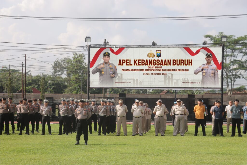 BlitarLintasberita9.com- ,Polres Blitar melaksanakan Apel Kebangsaan Paguyuban Pekerja/Buruh Kabupaten Blitar yang digelar di halaman Mapolres Blitar. Kegiatan yang berlangsung sejak pukul 07.30 WIB tersebut diikuti oleh sekitar 100 peserta dari Paguyuban Pekerja dan Buruh se-Kabupaten Blitar, Kamis (23/10/202).