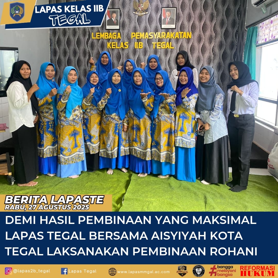 Tegal – Lintasberita9.com- ,27 Agustus 2025 – Lapas Tegal bekerja sama dengan Aisyiyah Kota Tegal gelar kegiatan pembinaan rohani bagiLintas Berita 9