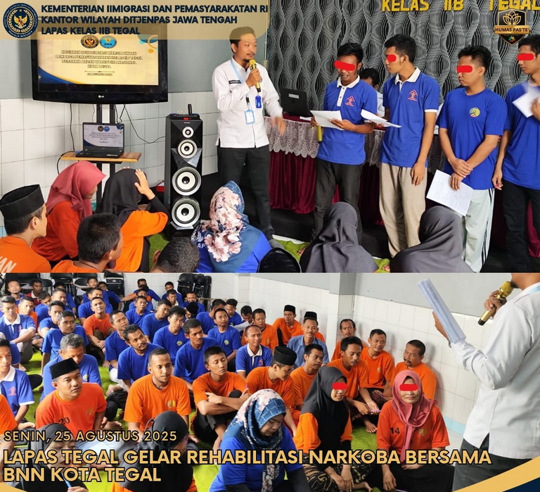 TEGAL –Lintasberita9.com- ,25 Agustus 2025 – Lembaga Pemasyarakatan Kelas IIB Tegal berkolaborasi dengan Badan Narkotika Nasional (BNN) Kota Tegal laksanakanLintas Berita 9
