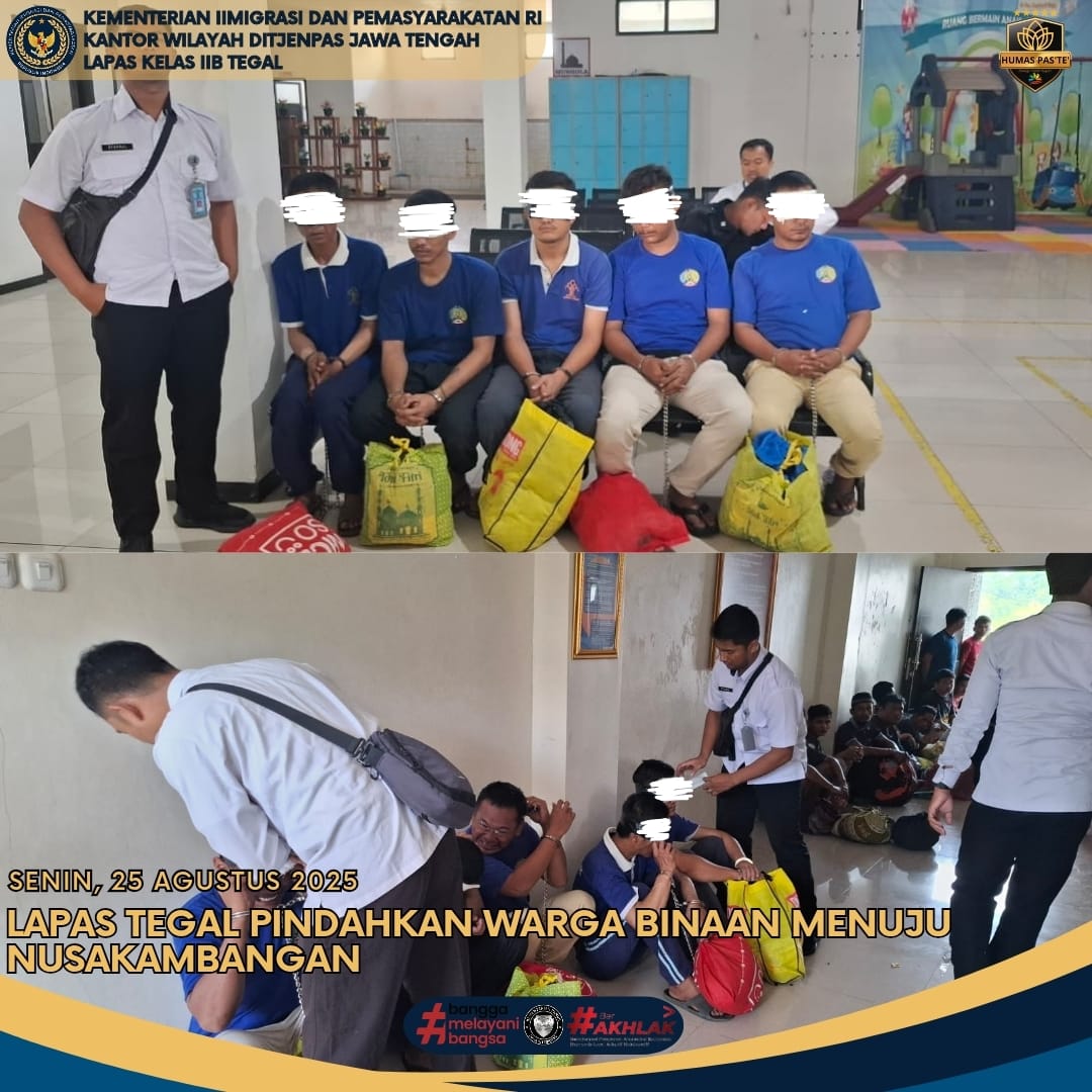 TEGAL – Lintasberita9.com- ,25 Agustus 2025 – Sebanyak lima warga binaan dari Lembaga Pemasyarakatan Kelas IIB Tegal dipindahkan ke LapasLintas Berita 9