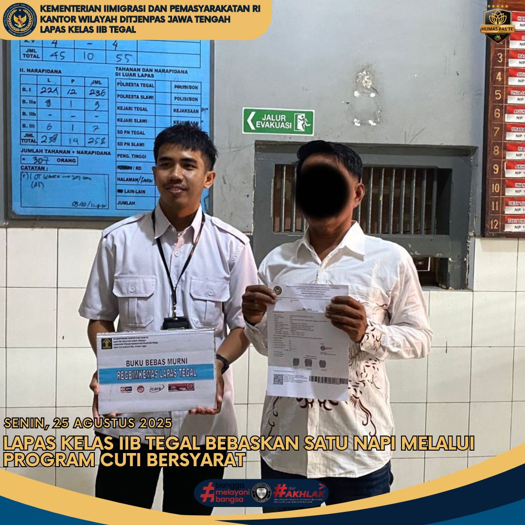 TEGAL – Lintasberita9.com- ,25 Agustus 2025 – Lembaga Pemasyarakatan Kelas IIB Tegal telah melaksanakan pembebasan secara reintegrasi sosial terhadap satuLintas Berita 9