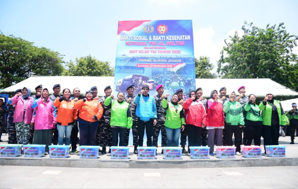 Komandan Pusat Penerbangan TNl Angkatan Laut (Danpuspenerbal), Laksda TNl Bayu Alisyahbana bersama Pangkotama TNl AL wilayah Surabaya hadir dan meninjau pelaksanaan Bakti Sosial dan Bakti Kesehatan Kotama TNI AL Wilayah Timur menjelang peringatan HUT ke-80 TNI Tahun 2025 pada Senin (22/9/2025).