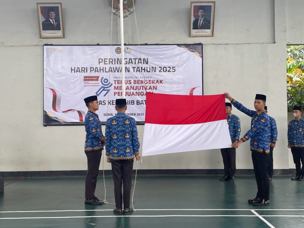 Batang – lintasberita9.com- ,Dalam rangka memperingati Hari Pahlawan Tahun 2025, Lembaga Pemasyarakatan (Lapas) Kelas IIB Batang menggelar upacara yang penuh khidmat dan kedisiplinan di Aula Lapas Batang pada, Senin (10/11). Upacara yang mengusung tema “Pahlawanku Teladanku, Terus Bergerak, Melanjutkan Perjuangan” ini diikuti oleh Kepala Lapas Batang, Nurhamdan, beserta jajaran pejabat struktural, seluruh pegawai, serta perwakilan warga binaan.