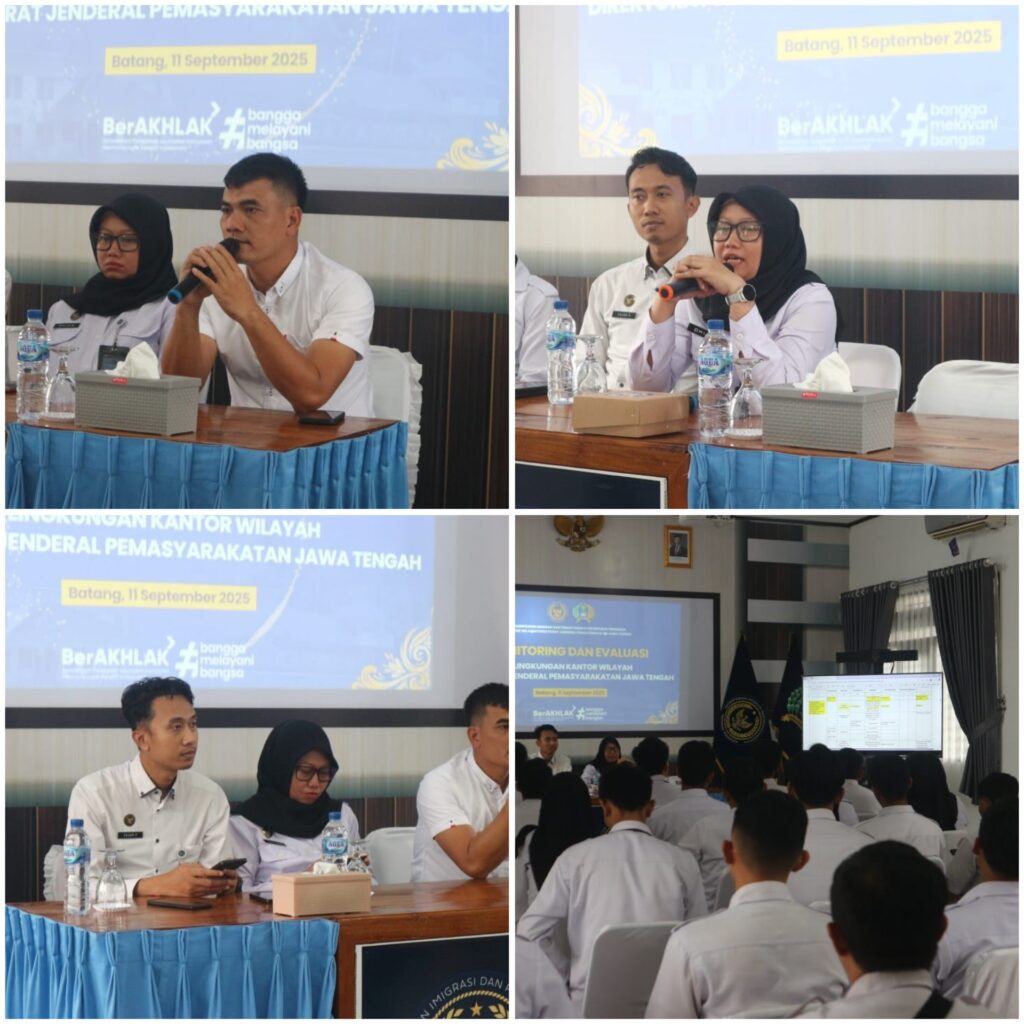 Batang – Lintasberita9.com- ,Lembaga Pemasyarakatan (Lapas) Kelas IIB Batang menjadi tuan rumah kegiatan Monitoring dan Evaluasi (Monev) yang dilaksanakan oleh Tim Kantor Wilayah Direktorat Jenderal Pemasyarakatan Jawa Tengah, Kamis (11/9). Kegiatan ini digelar di aula Lapas Batang dan ini diikuti oleh perwakilan pengelola kepegawaian dan humas dari Unit Pelaksana Teknis (UPT) Pemasyarakatan se-eks Karesidenan Pekalongan.
