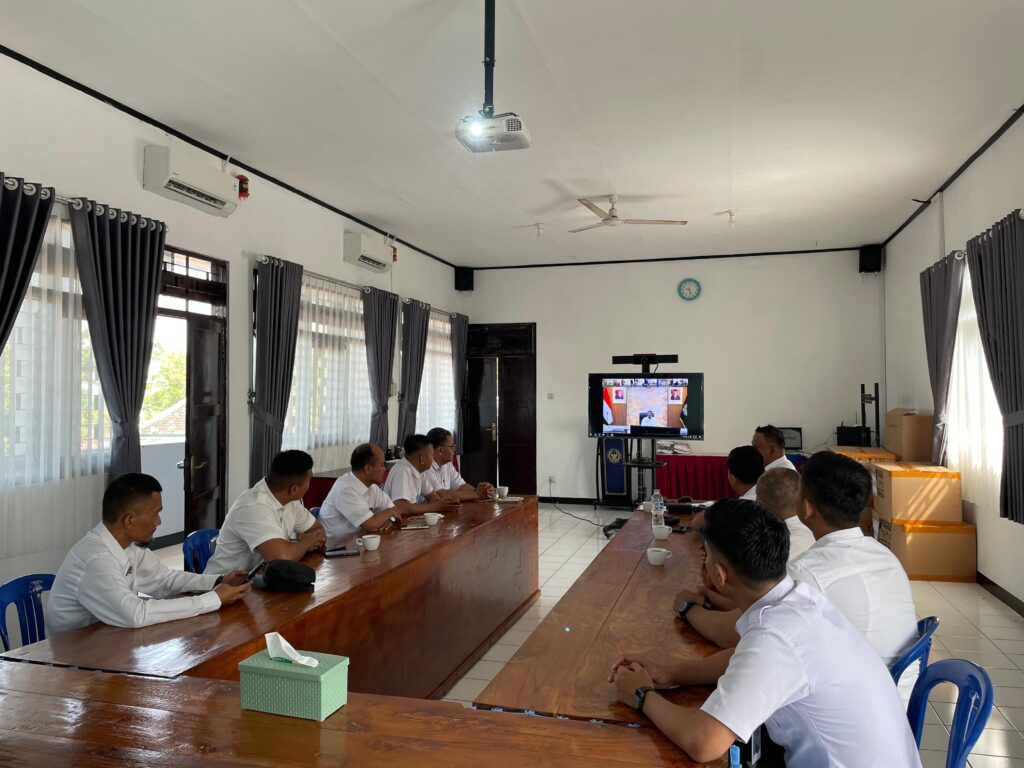 Batang – Lintasberita9.com- ,Lapas Kelas IIB Batang mengikuti kegiatan pengarahan Direktur Jenderal Pemasyarakatan, Mashudi, terkait persiapan pelaksanaan penanaman kelapa serentak di Nusakambangan, Kamis (4/9). Kegiatan ini dilaksanakan secara virtual melalui Zoom Meeting yang digelar di Aula Lapas Batang dan diikuti oleh jajaran pegawai dengan penuh perhatian.