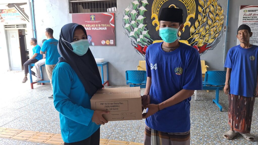 Tegal, 15 Desember 2025 – Lembaga Pemasyarakatan Kelas IIB Tegal terus lakukan peningkatan kesehatan bagi warga binaan. Lapas Tegal menyalurkan Pemberian Makanan Tambahan (PMT) khusus berupa susu kambing kepada warga binaan yang tengah menjalani perawatan penyakit Tuberkulosis (TBC). Langkah ini merupakan bagian dari upaya intensif untuk mempercepat pemulihan dan meningkatkan daya tahan tubuh narapidana yang terinfeksi.