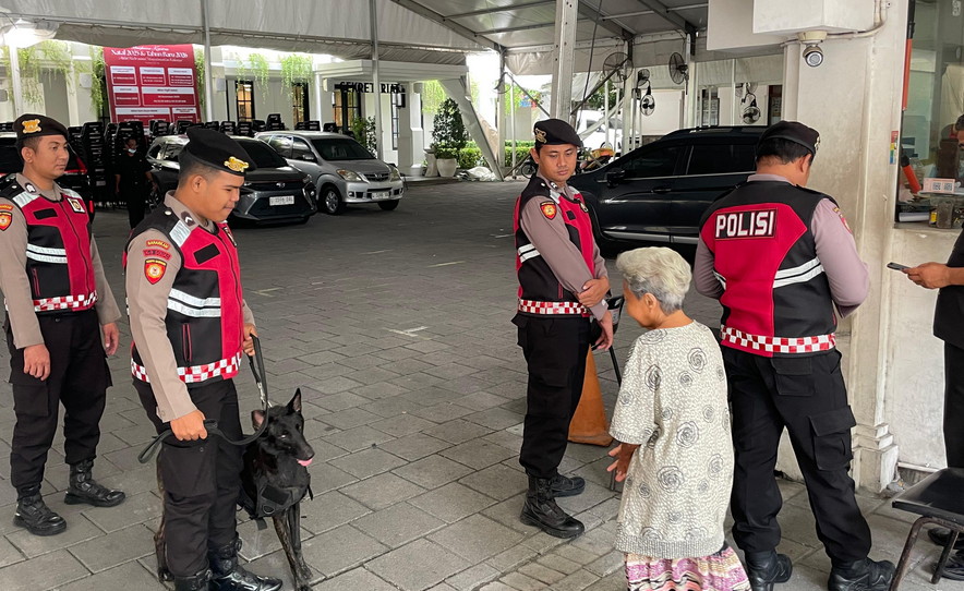 Dalam pelaksanaannya, personel Ditsamapta Polda Jatim mengerahkan satwa K9 untuk melakukan pemeriksaan menyeluruh di area dalam dan sekitar gereja.