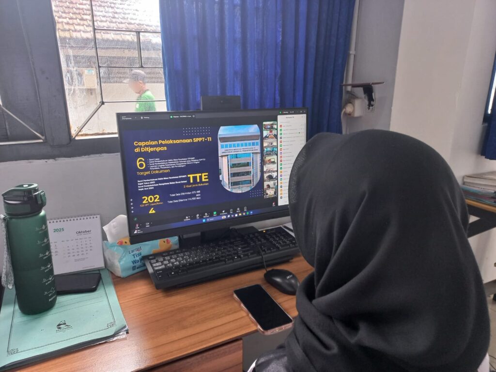 Batang – Lintasberita9.com- ,Lapas Kelas IIB Batang mengikuti kegiatan Bimbingan Teknis Sistem Peradilan Pidana Terpadu Berbasis Teknologi Informasi (SPPT-TI) yang diselenggarakan oleh Kantor Wilayah Ditjenpas Jawa Tengah, Rabu (17/9). Kegiatan ini diikuti jajaran petugas regbimkemas Lapas Batang secara virtual melalui Zoom Meeting.
