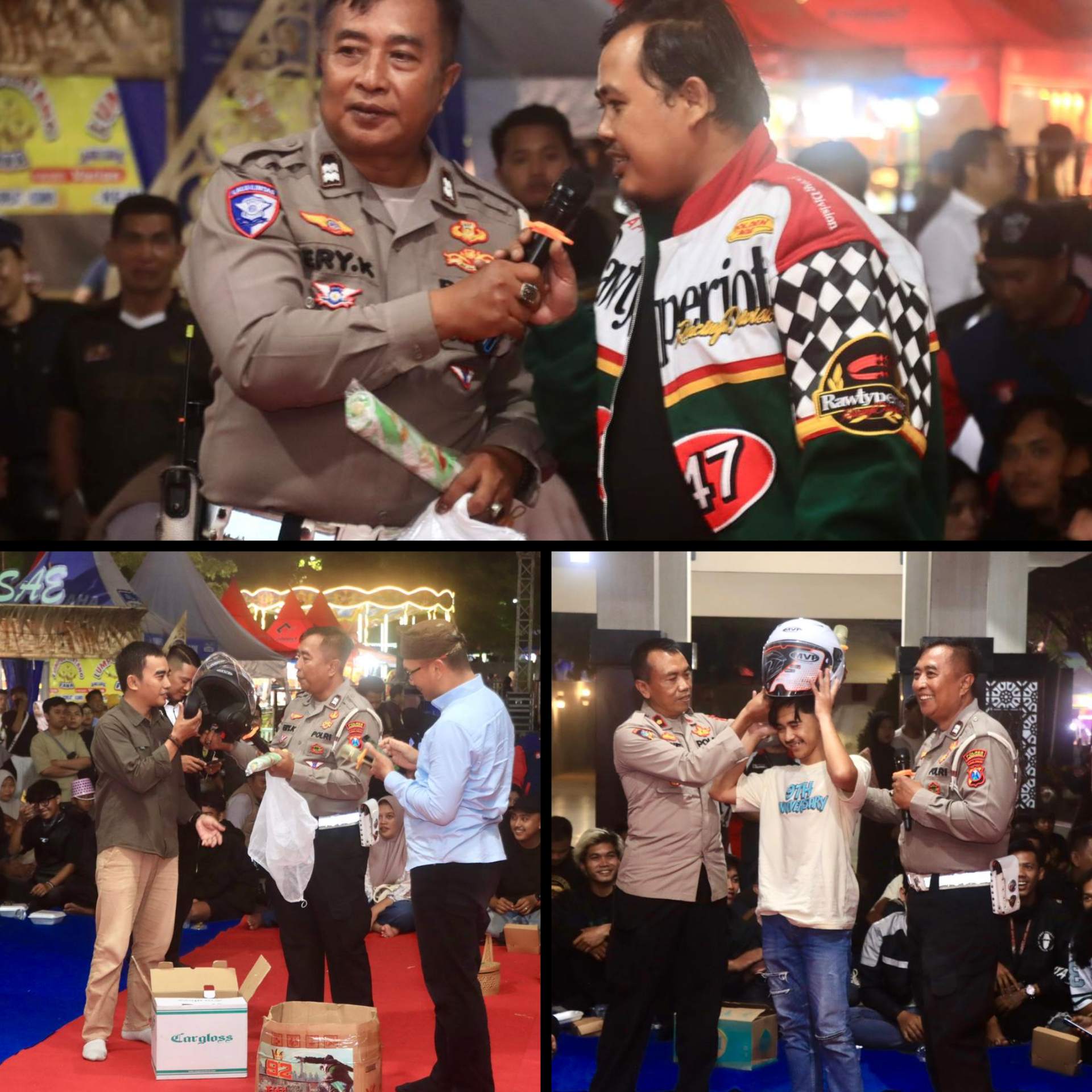 Kegiatan ini menjadi bagian dari rangkaian acara yang melibatkan komunitas sepeda motor, komunitas cosplay, serta masyarakat umum yang hadir.