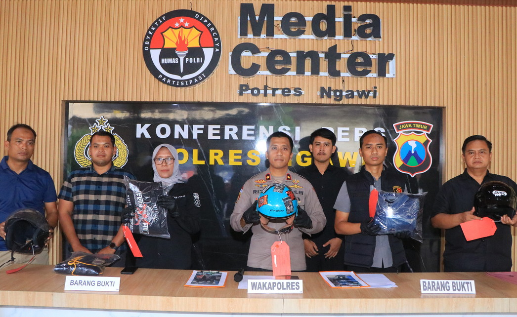 Selain mengamankan pelaku, petugas juga menyita sejumlah barang bukti, di antaranya sepeda motor, pakaian yang digunakan pelaku saat kejadian, serta beberapa helm.