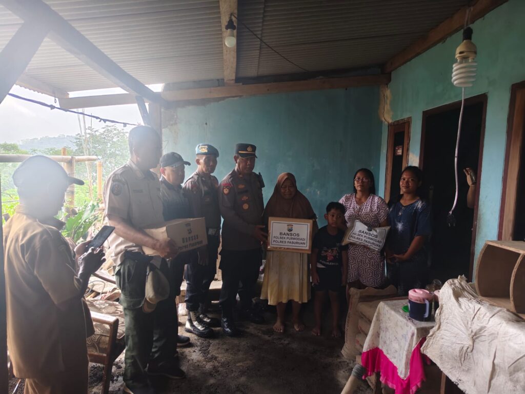 PASURUAN — Polres Pasuruan melalui Polsek Purwodadi menyalurkan bantuan sosial (bansos) kepada warga Dusun Sempuh, Desa Cowek, Kecamatan Purwodadi, yang rumahnya rusak akibat sambaran petir. Penyaluran bantuan dilakukan pada Senin (15/12/2025).