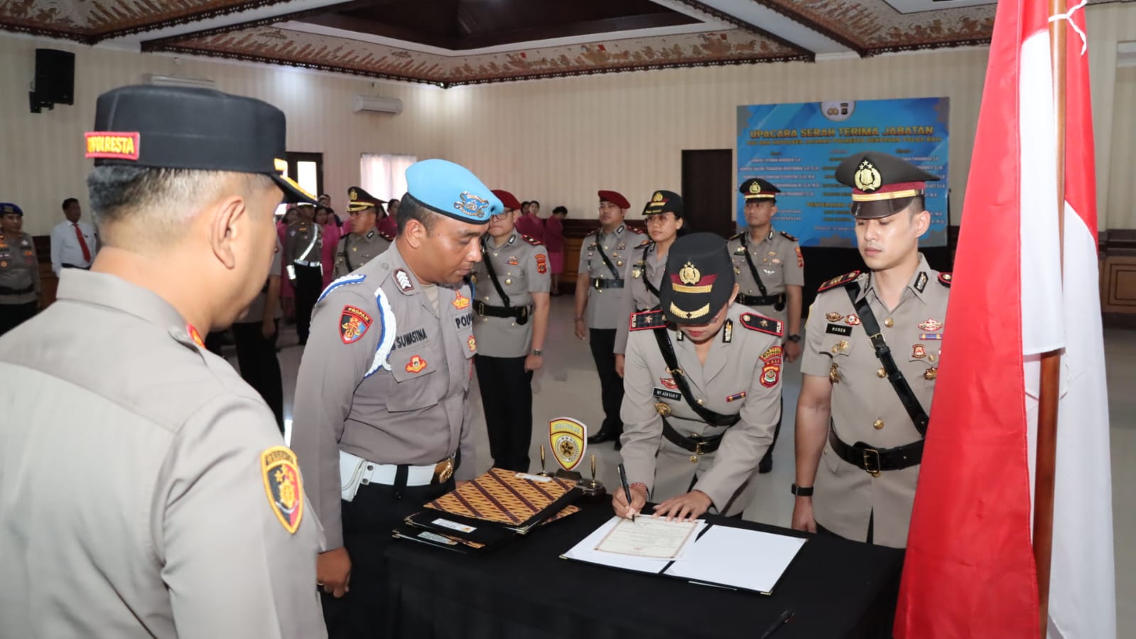 Adapun pejabat yang melaksanakan serah terima jabatan yakni Kabagops Polresta Denpasar dari pejabat lama Kompol I Nyoman Wiranata, S.H., kepada pejabat baru Kompol I Ketut Suaka Purnawasa, S.H. Selanjutnya, Kapolsek Denpasar Barat diserahterimakan dari Kompol Laksmi Trisnadewi Wieryawan, S.H., S.I.K., kepada Kompol Ni Wayan Adnyani Prabawati, S.I.K.