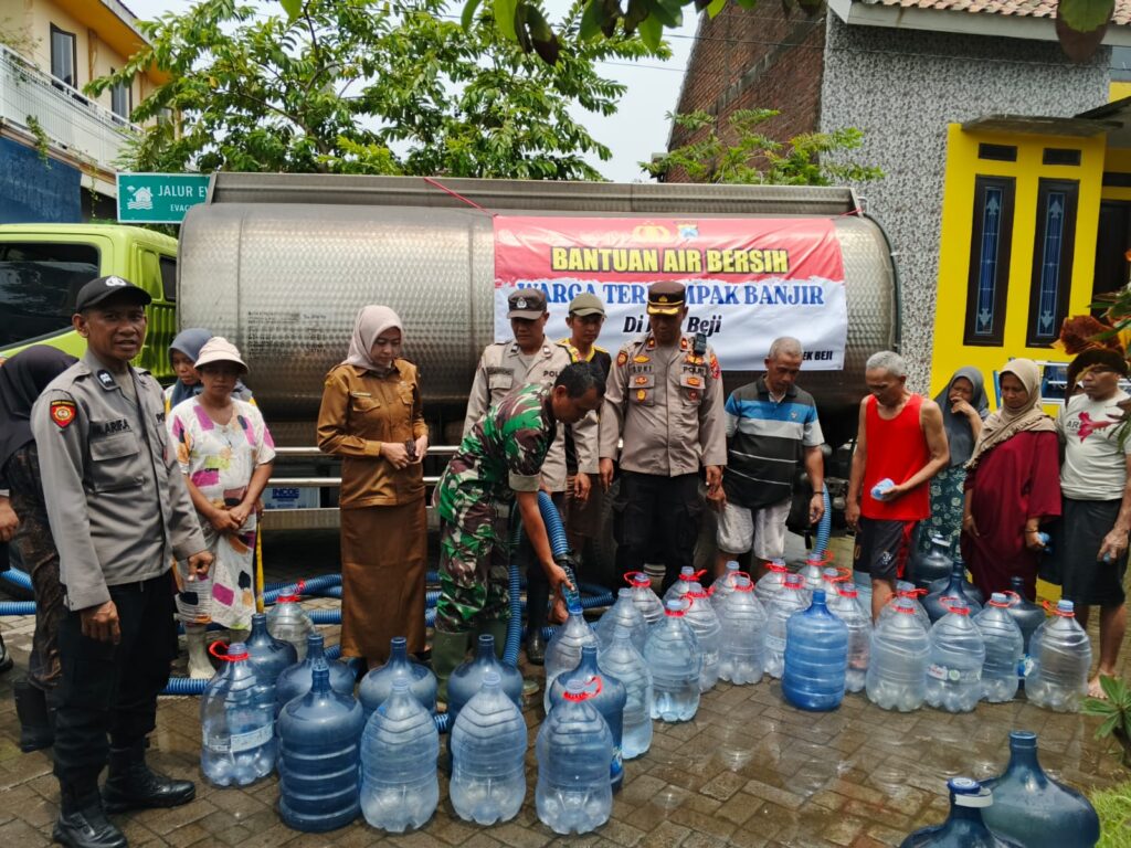 PASURUAN — Polsek Beji bersama Pemerintah Desa Kedungringin menyalurkan bantuan sosial berupa air bersih kepada warga yang terdampak banjir di Dusun Balungrejo, Desa Kedungringin, Kecamatan Beji, Senin (24/11/2025) pagi.