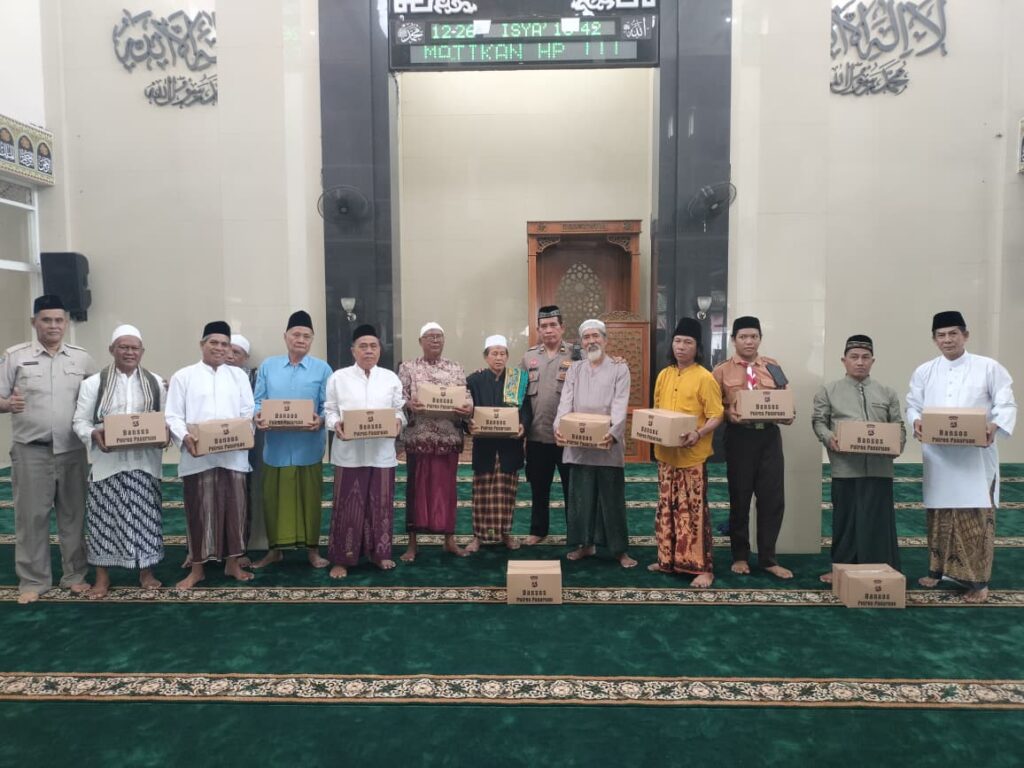 Usai ceramah, Satbinmas Polres Pasuruan menyerahkan bantuan sosial berupa paket sembako kepada seluruh marbot Masjid Ussisa Ala-Taqwa. Bantuan tersebut diterima dengan rasa syukur dan disambut penuh kebahagiaan oleh para marbot.