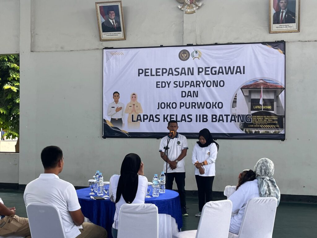 Batang – lintasberita9.com- ,Lembaga Pemasyarakatan (Lapas) Kelas IIB Batang menggelar kegiatan pelepasan pegawai yang berlangsung di Aula Lapas Batang dengan hangat dan kebersamaan. Kegiatan ini dihadiri oleh Kepala Lapas Batang, Nurhamdan, Ketua Dharma Wanita Persatuan (DWP) Lapas Batang, Rida Nurhamdan, jajaran struktural, pegawai, serta anggota DWP Lapas Batang, Jumat (31/10).