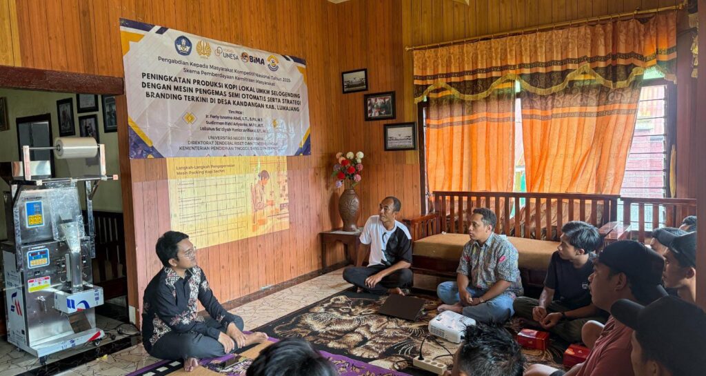 Kali ini, tim yang terdiri dari Ir. Ferly Isnomo Abdi, S.T., S.Pd., M.T., Sudirman Rizki Ariyanto, S.Pd., M.Pd., M.T., dan Lailatus Sa’diyah Yuniar Arifianti, S.T., M.T. memfokuskan kegiatan mereka pada pemberdayaan pelaku usaha kopi di Desa Selogending, Kecamatan Senduro Kab. Lumajang.