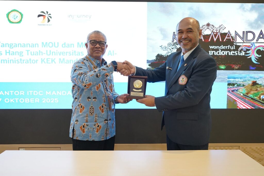 Mandalika, 17 Oktober 2025 — Universitas Hang Tuah (UHT) Surabaya bersama Universitas Islam Al-Azhar (UNIZAR) Mataram dan Administrator Kawasan Ekonomi Khusus (KEK) Mandalika menandatangani Nota Kesepahaman (MoU) dan Perjanjian Kerja Sama (MoA) di Aula ITDC Mandalika, Lombok Tengah.