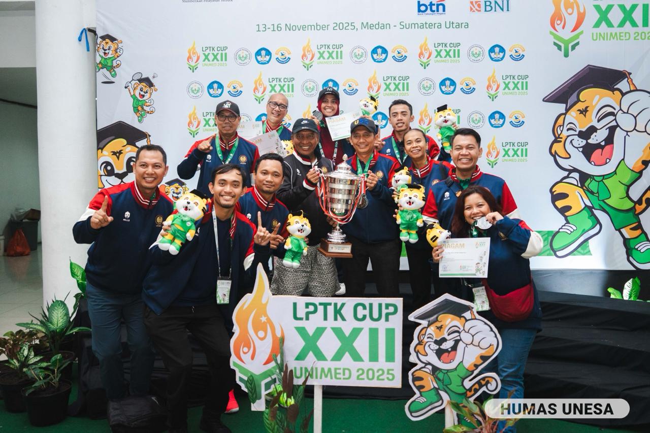 Surabaya, – lintasberita9.com- ,Universitas Negeri Surabaya (Unesa) kembali mengukuhkan reputasinya sebagai kampus unggulan di bidang olahraga setelah meraih gelar Juara Umum pada ajang LPTK Cup XX 2025 yang berlangsung di Universitas Negeri Medan (Unimed) pada 12–15 November 2025.