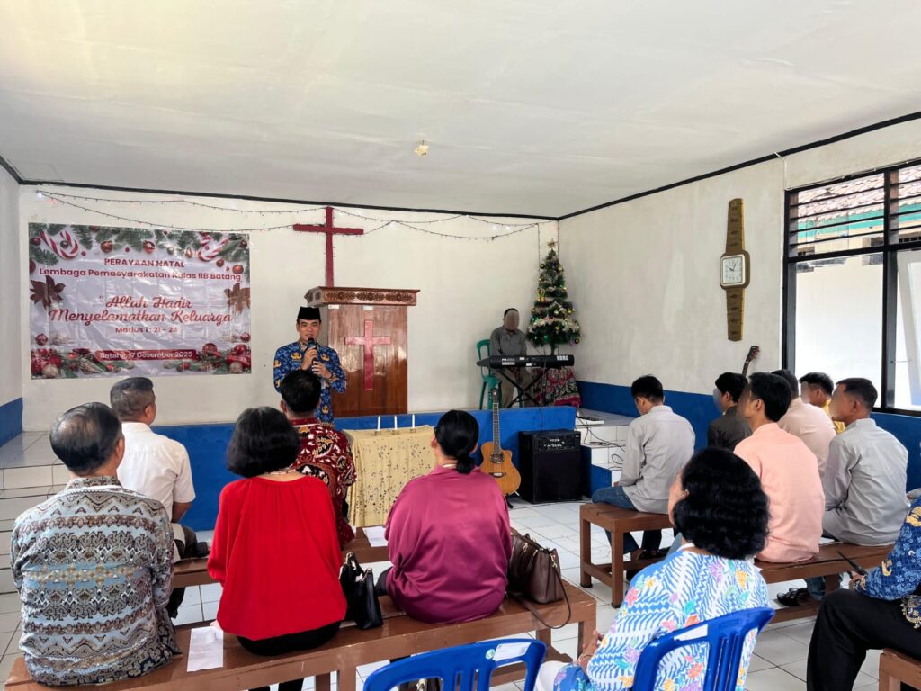 Batang – Suasana penuh sukacita menyelimuti Gereja El Sadai Lapas Kelas IIB Batang dalam perayaan Natal bersama warga binaan nasrani Lapas Batang. Acara ini dihadiri oleh Persekutuan Umat Kristen Kabupaten Batang (PUKKB), Kepala Lapas Kelas IIB Batang, Nurhamdan, jajaran pejabat struktural Lapas Batang, serta dua penyuluh dari Kementerian Agama Kabupaten Batang. Rabu, (17/12)